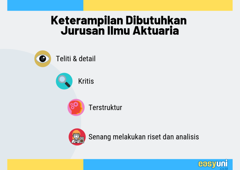 Memilih kuliah di jurusan ilmu aktuaria ini, Anda akan banyak mempelajari bidang matematika, statistik, peluang, hingga ke pemrograman komputer dan keuangan.